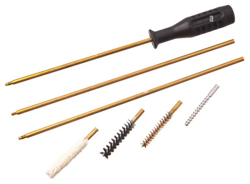 Een bore snake is een fantastisch product om je loop even door te halen, zowel voor- als na het schieten. Maar je wil geen solvent d.m.v. de bore snake in de loop brengen. Dat doe je toch het beste met een pompstok met wat opzetstukken.