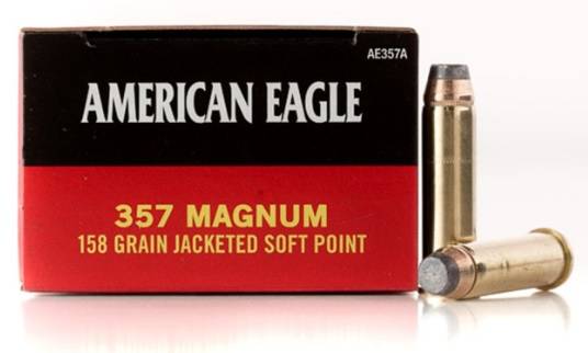 .357 Magnum munitie van het merk American Eagle. Deze patronen zijn door de vlakke neus uitstekend te gebruiken in onze lever action wapens.