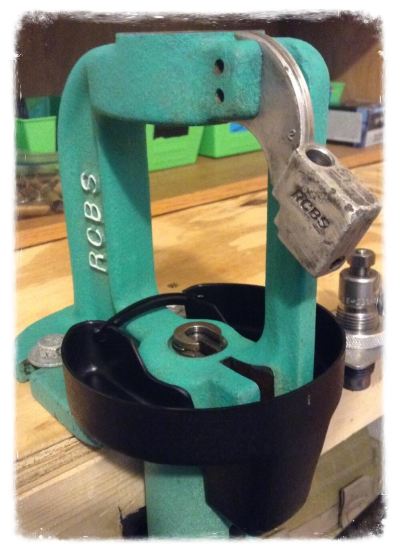 Het plaatsen van een primer catcher op een RCBS Rock Chucker II pers.