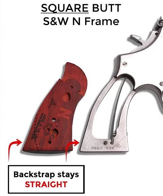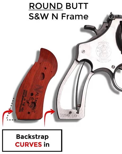 De Hogue rubber monogrip gedemonteerd. Er is goed zicht op het round butt frame van de Smith & Wesson revolver.
