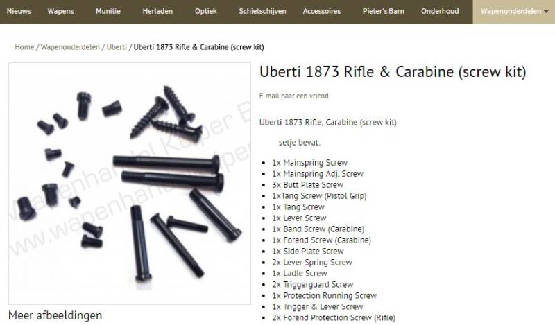 Via de website kan men al snel de boutjes vinden. Ga in de menubalk naar "wapenonderdelen" en klik het merk "Uberti" aan.