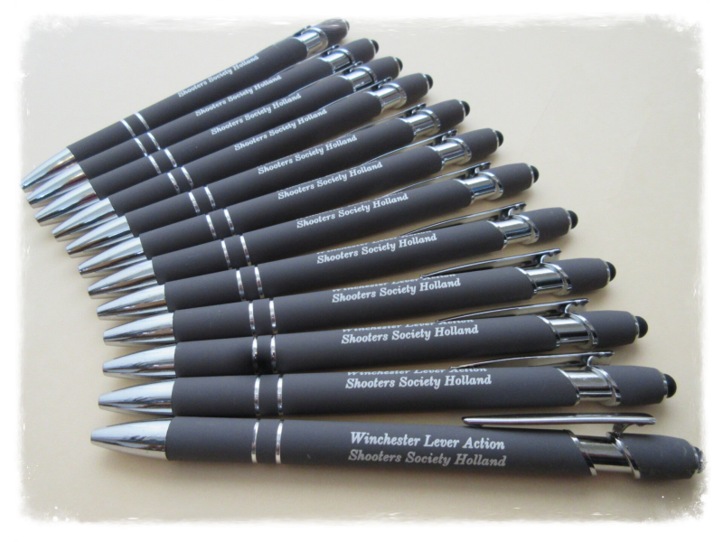 Een pen met de verenigingsnaam erop voor elke deelnemer.