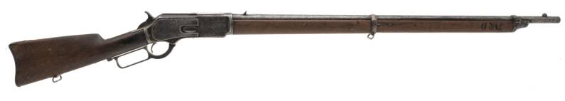 Winchester 1876 musket uit 1882 van de Hawaii National Guard. Het kaliber is .45-75 Winchester.